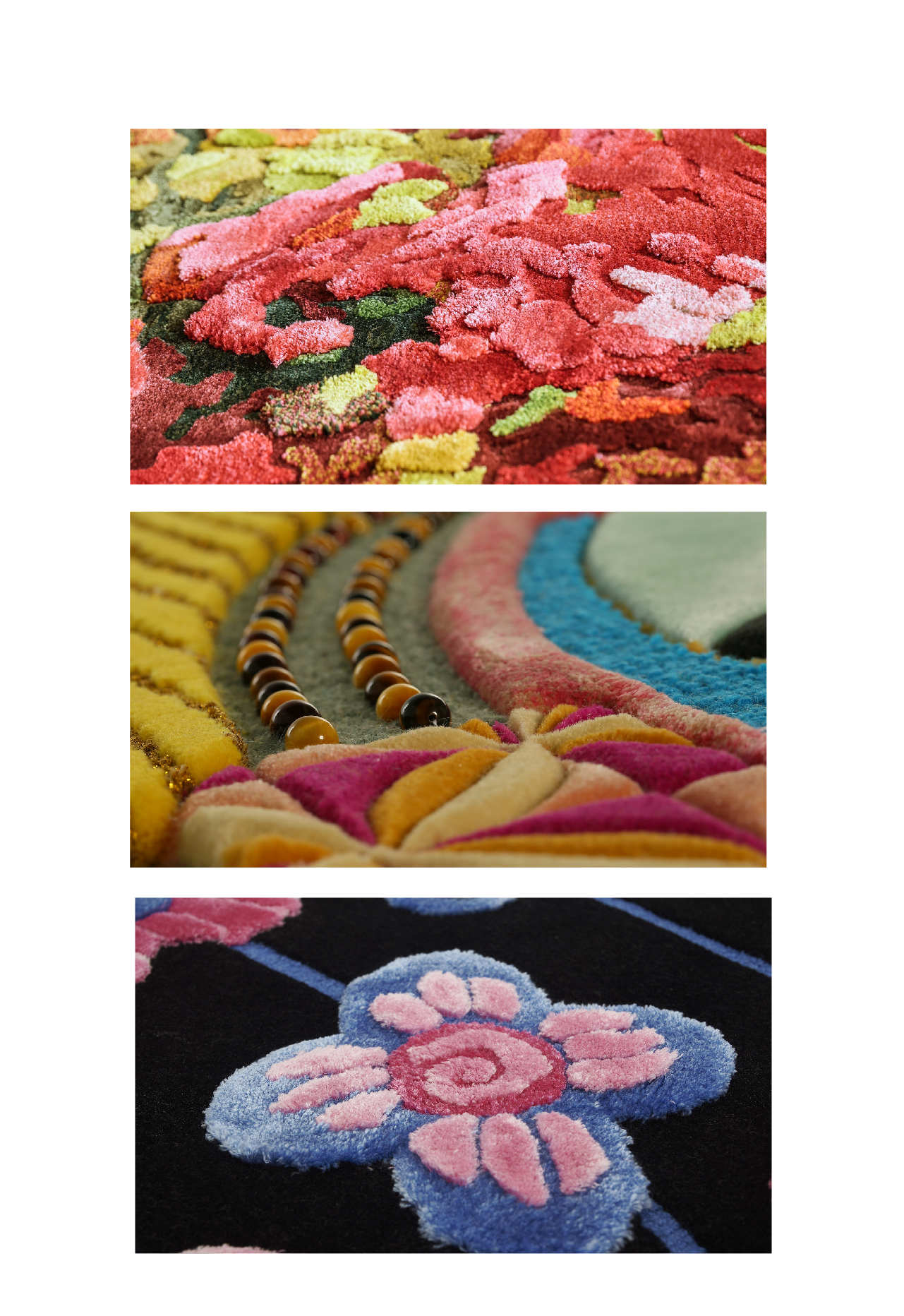 This concept is presented through exquisite design and innovative materials, harmoniously combining carpet weaving art with nature, creating a wonderful visual and tactile experience for the audience.